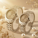 A men's watch with a quartz movement typically features a precise and reliable mechanism. The golden case paired with a white dial offers a classic and elegant aesthetic, suitable for various occasions.