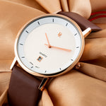 A men's watch with a quartz movement typically features a precise and reliable mechanism. The golden case paired with a white dial offers a classic and elegant aesthetic, suitable for various occasions.