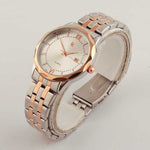 A men's watch with a quartz movement typically features a precise and reliable mechanism. The golden case paired with a white dial offers a classic and elegant aesthetic, suitable for various occasions.