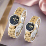 A men's watch with a quartz movement typically features a precise and reliable mechanism. The golden case paired with a white dial offers a classic and elegant aesthetic, suitable for various occasions.