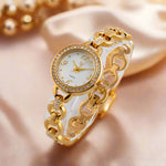 A men's watch with a quartz movement typically features a precise and reliable mechanism. The golden case paired with a white dial offers a classic and elegant aesthetic, suitable for various occasions.