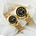 A men's watch with a quartz movement typically features a precise and reliable mechanism. The golden case paired with a white dial offers a classic and elegant aesthetic, suitable for various occasions.