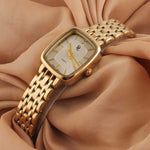 A men's watch with a quartz movement typically features a precise and reliable mechanism. The golden case paired with a white dial offers a classic and elegant aesthetic, suitable for various occasions.
