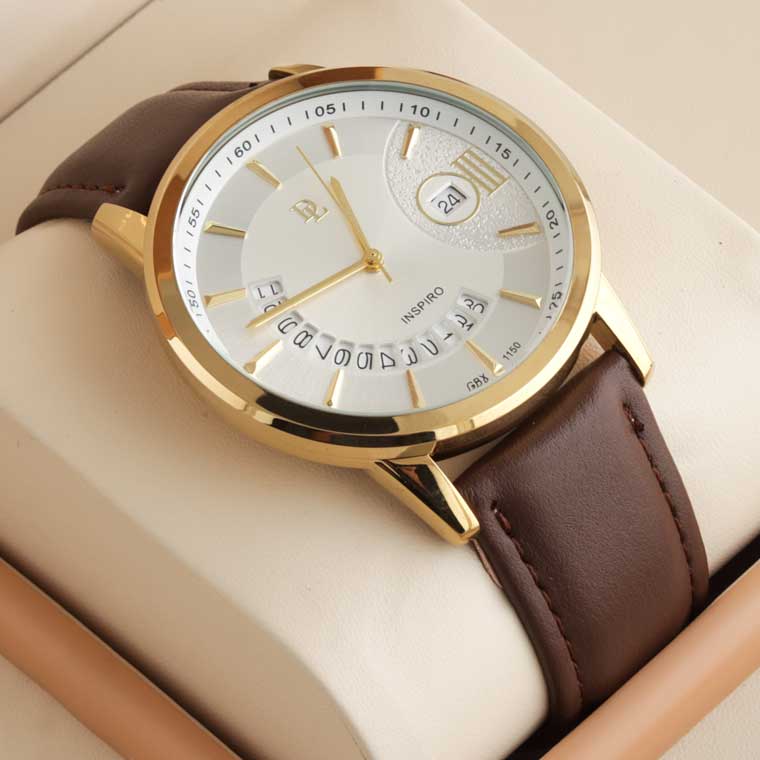 Discover the elegance of our golden white dial watch, showcasing a reliable Quartz movement and expertly crafted in Japan. Experience timeless sophistication on your wrist.