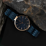 A modern take on a Blue river. The Iconic Link features a luxurious metal bracelet with three-piece links; each segment is comprised of solid steel, individually crafted pieces in an elegantly tapered form, ensuring a seamless transition from case to clasp.
