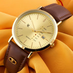 A men's watch with a quartz movement typically features a precise and reliable mechanism. The golden case paired with a white dial offers a classic and elegant aesthetic, suitable for various occasions.
