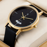 A men's watch with a quartz movement typically features a precise and reliable mechanism. The golden case paired with a white dial offers a classic and elegant aesthetic, suitable for various occasions.