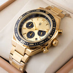 Crafted from High Alloy Steel, the De Lawrence Daytona features a robust and durable case designed to withstand the test of time. Its premium finish offers a sophisticated look that pairs perfectly with its modern features. The alloy steel construction not only adds to the watch's strength but also gives it a luxurious shine, exuding class and refinement.