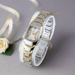 A men's watch with a quartz movement typically features a precise and reliable mechanism. The golden case paired with a white dial offers a classic and elegant aesthetic, suitable for various occasions.