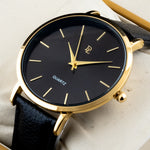 A men's watch with a quartz movement typically features a precise and reliable mechanism. The golden case paired with a white dial offers a classic and elegant aesthetic, suitable for various occasions.