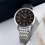 Timeless sophistication awaits with our exquisite black dial watch. Meticulously crafted in Japan, it boasts a reliable Quartz movement that ensures precision and accuracy. Elevate your style and make a statement with this elegant timepiece.