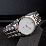 Discover the elegance of our golden white dial watch, showcasing a reliable Quartz movement and expertly crafted in Japan. Experience timeless sophistication on your wrist.