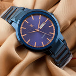 The  Classy Iconic features White Presentable D dial. A color that symbolizes the  serenity, and calmness. Crafted with polished stainless steel, available with a vibrant Blue tone finish. A classic timepiece that gives your look a unique touch.