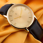 A men's watch with a quartz movement typically features a precise and reliable mechanism. The golden case paired with a white dial offers a classic and elegant aesthetic, suitable for various occasions.