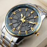 A men's watch with a quartz movement typically features a precise and reliable mechanism. The golden case paired with a white dial offers a classic and elegant aesthetic, suitable for various occasions.