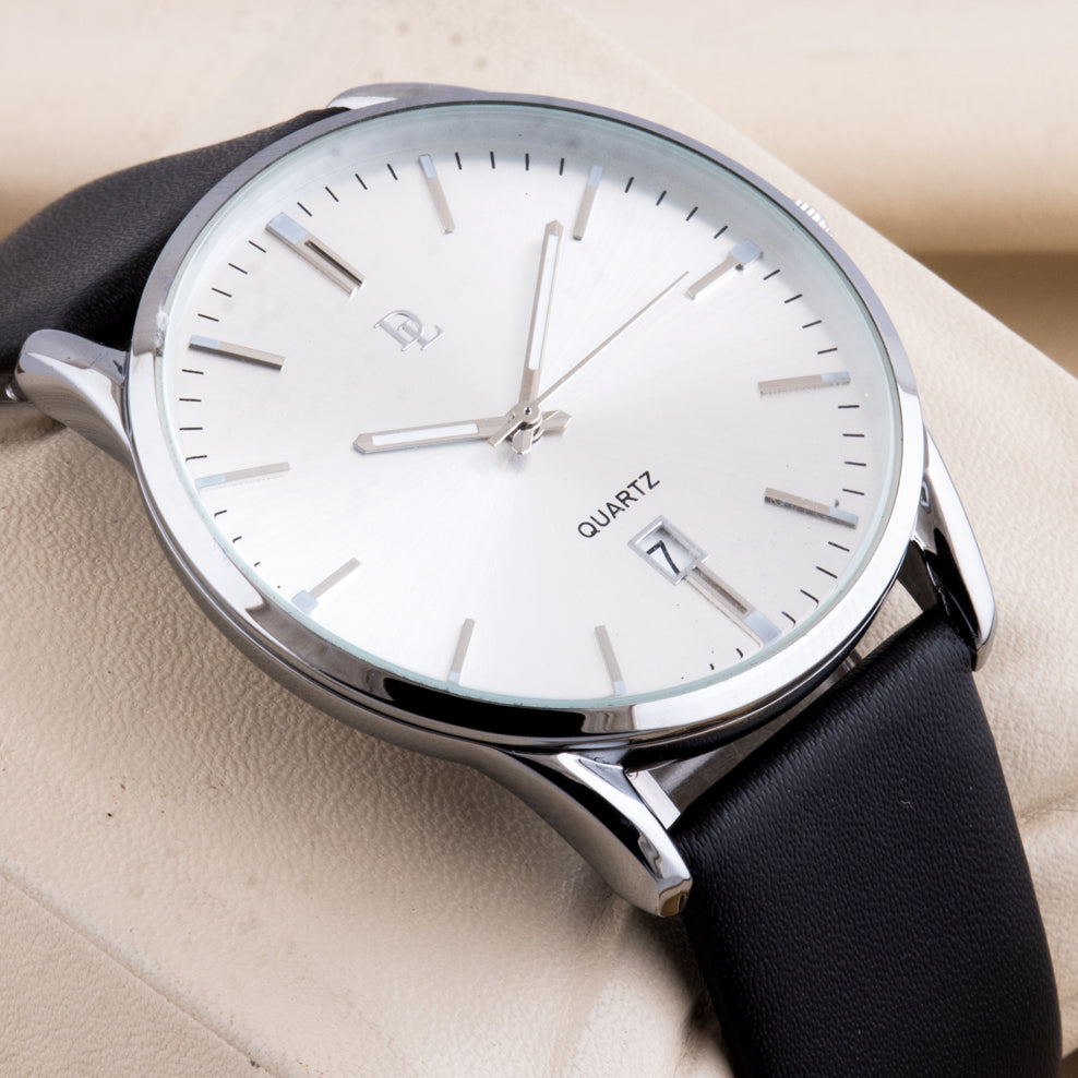 | Bracelet | Hand-sewn leather strap with black stitching on side with Pin lock |